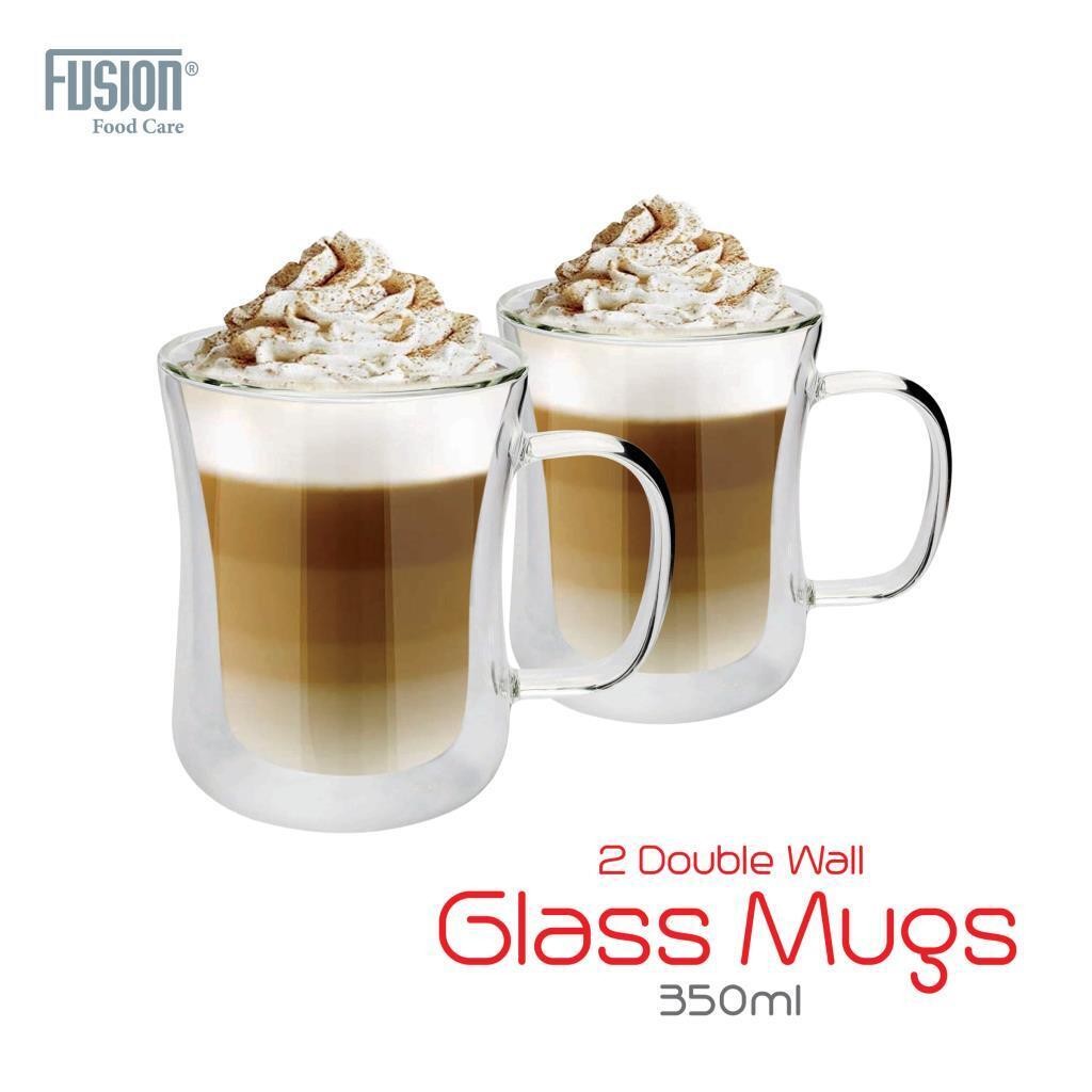 2 X Double Walled Glasses 350ML or 450ML for Latte Coffee Tea Glass Mugs Wall