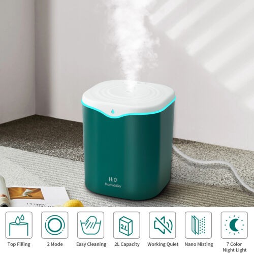 2000ml Quiet Ultrasonic Humidifier 2-in-1 Diffuser Cool Mist Maker W/ LED Light
