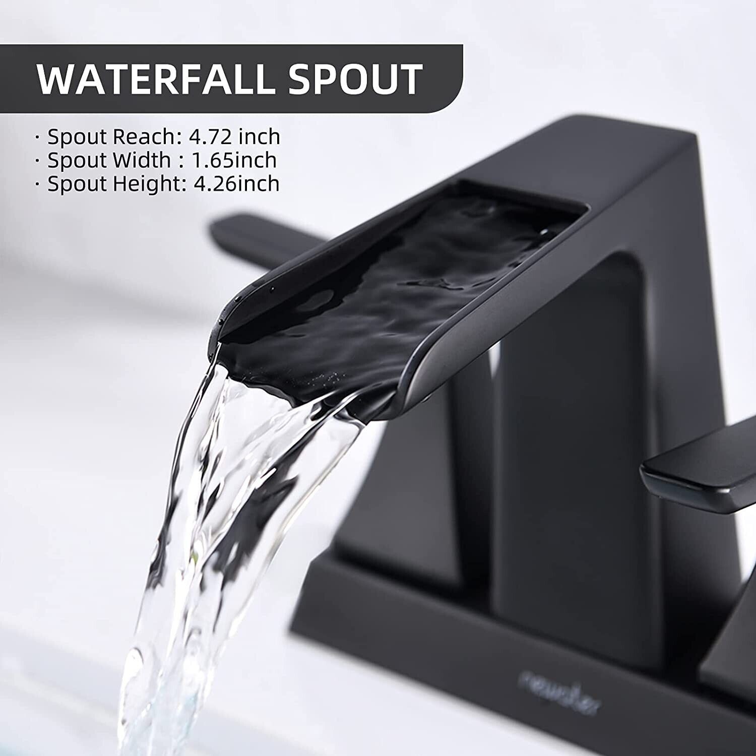 4 inch Centerset Bathroom faucet Matte Black 2-handle 3 Hole Basin Sink Mixer