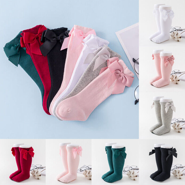 Baby Toddler Girl Knee High Long Socks Cotton Princess Bowknot Tights Stockings