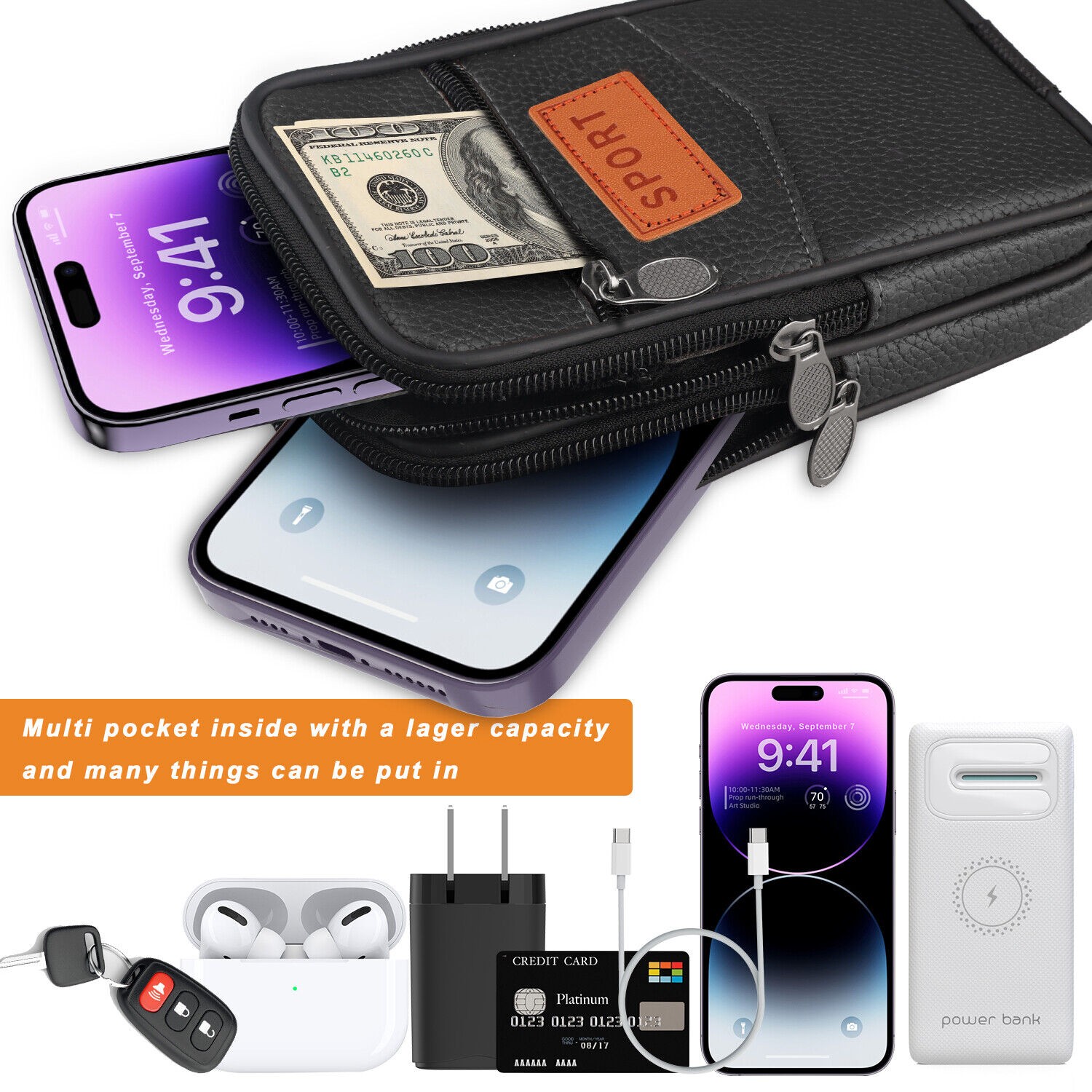 Cell Phone Holster Pouch Leather Wallet Holder Case Belt Loop For iPhone Samsung