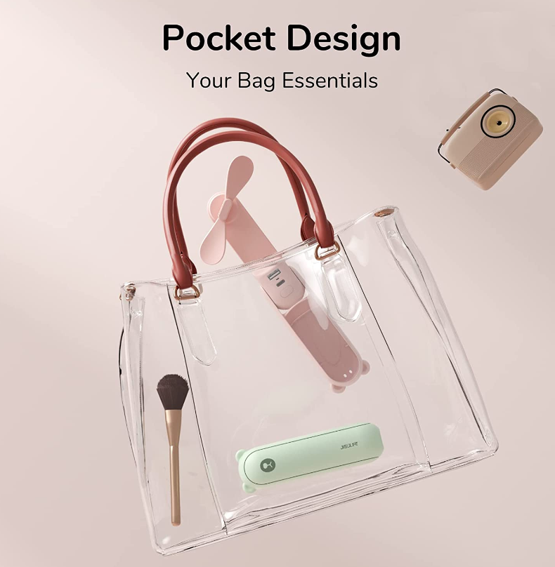 • Pocket Size Fan -- Easy to jam into a bag to tote around for optimal cooling.