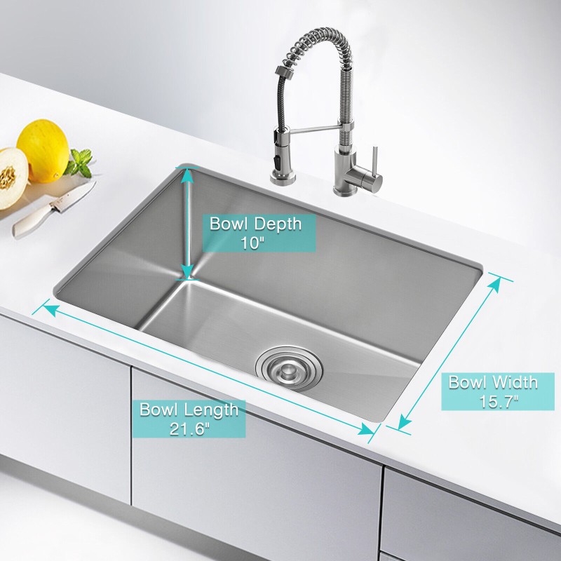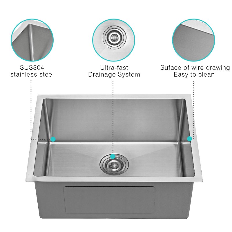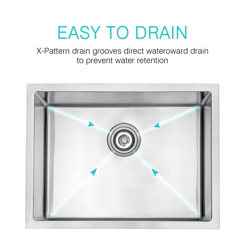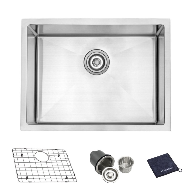 JASSFERRY 23in Single Bowl Handcrafted 18 Gauge Stainless Steel Undermount Sink