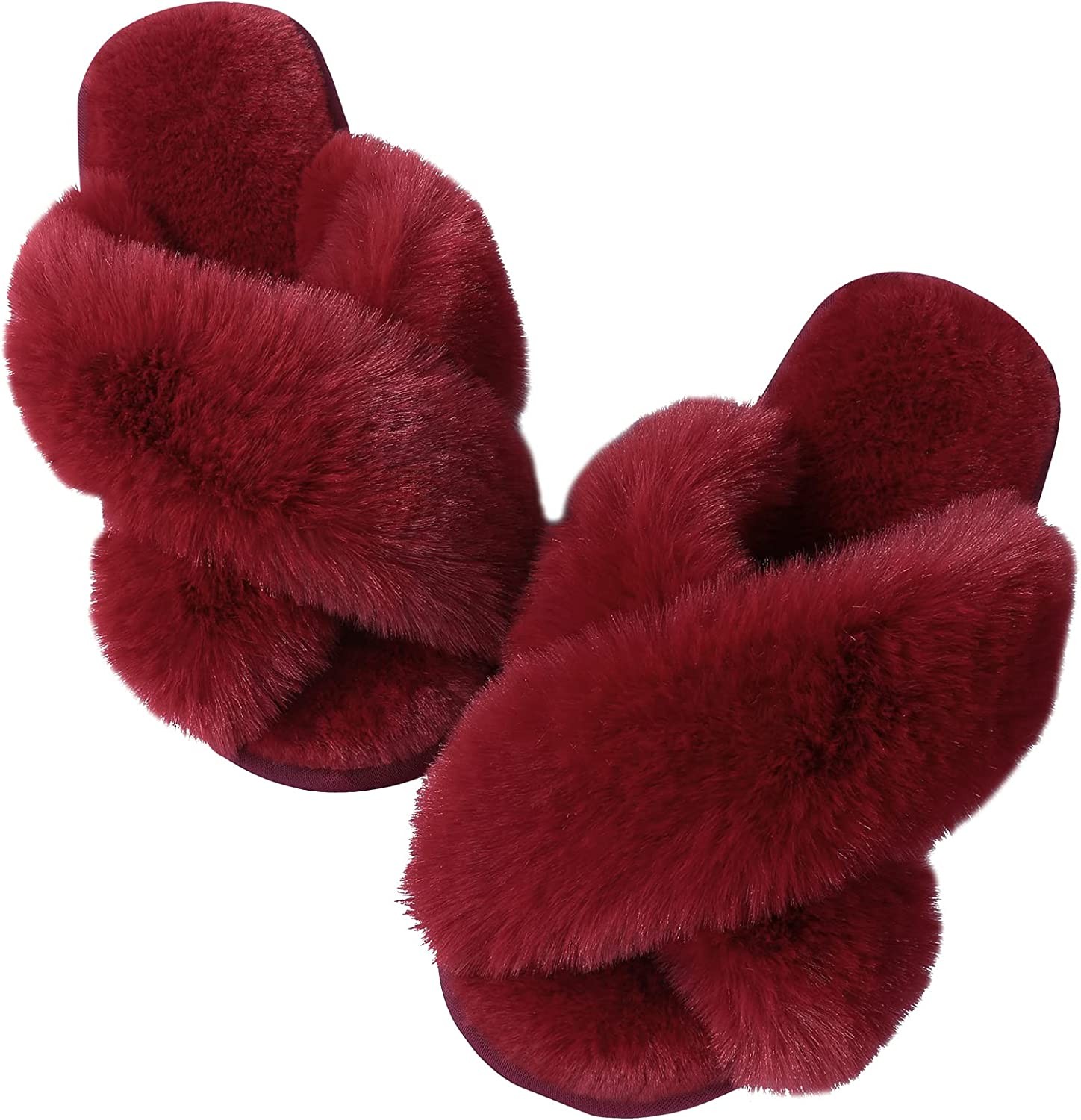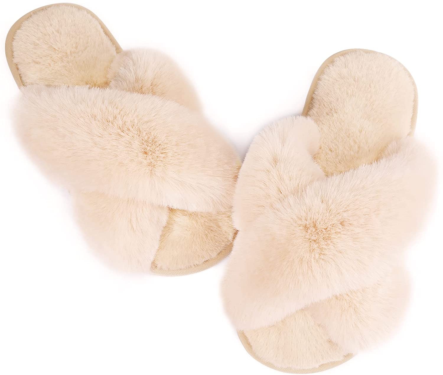 Womens Fuzzy Memory Foam Slippers - Ankis Cross Band Cozy Plush Home Slippers Fl