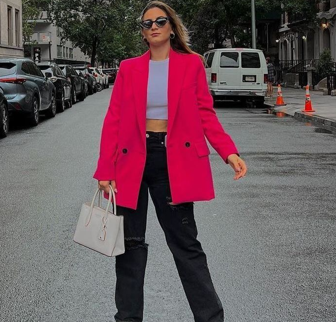 This long loose fit blazer from Zara is made from 100% polyester with matching lining, ensuring the most comfort fit. Featuring a lapel collar, back vent at hem, long sleeves with shoulder pads and front button fastening. The shoulder pads give off a more structured look and front flap pockets provides practicality to the smart blazer making it perfect for everyday wear. The colour and structure of this blazer leave it versatile enough to wear for any occasion.